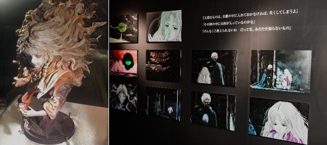 Additional displays showcase key scenes from the animation, along with sculptural works by concept artist and digital sculptor Entei Ryu, whose art is deeply influenced by both Oshii and Amano.
